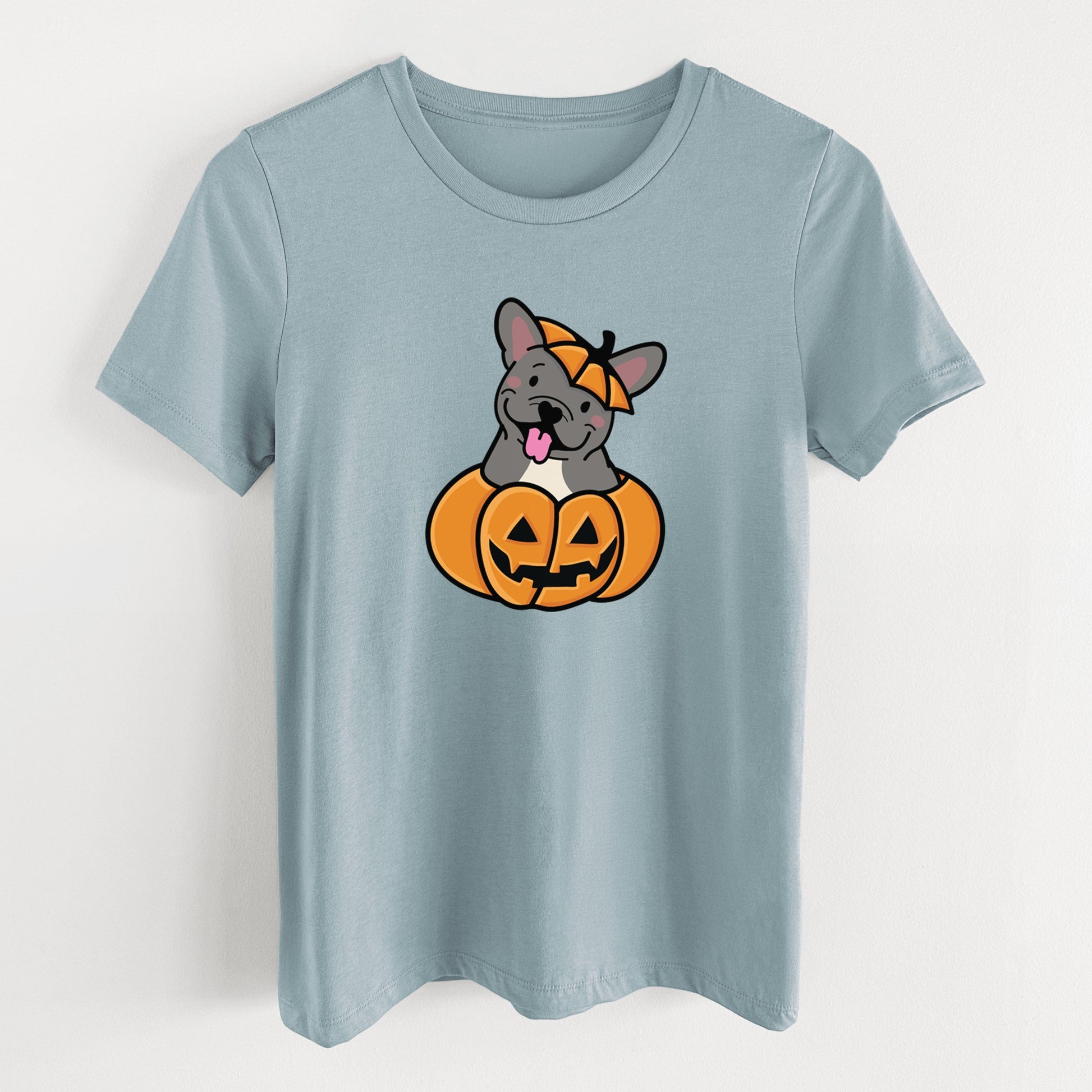 Pumpkin Pup - French Bulldog - Women's Lightweight Relaxed Fit 100% Cotton Crewneck