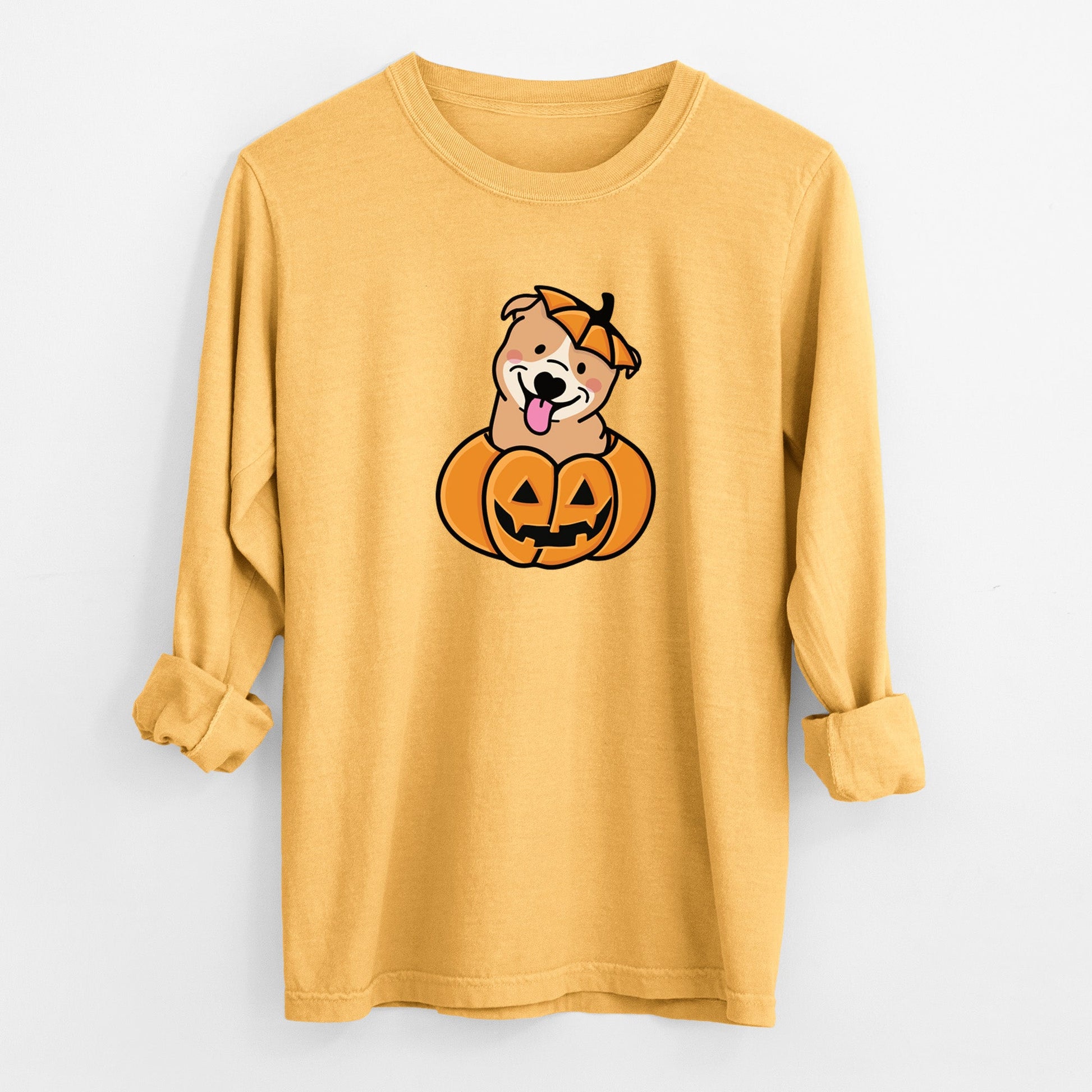 Pumpkin Pup - Pitbull - Heavyweight 100% Cotton Long Sleeve
